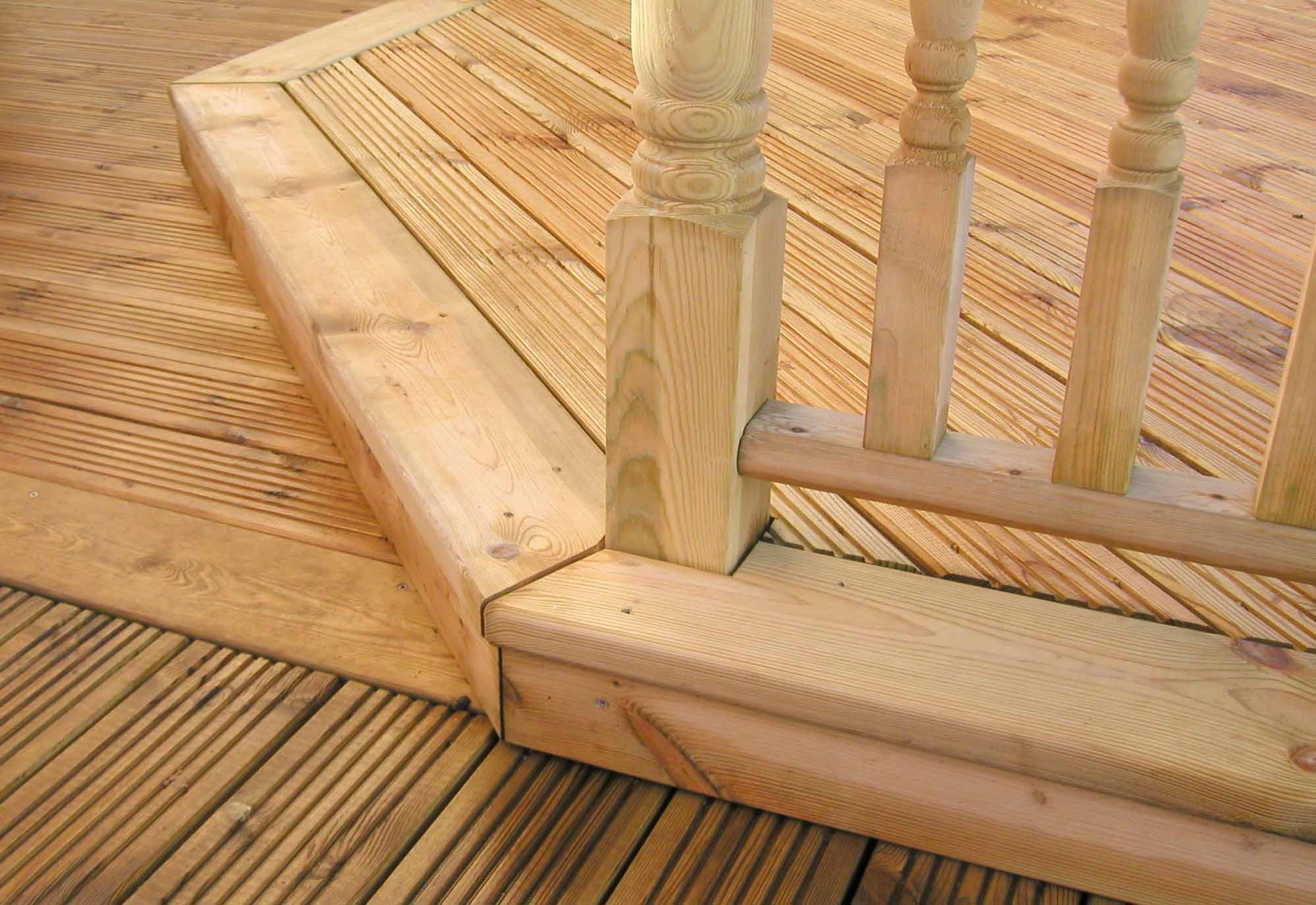 Basamaklarda, hafif bir düşüş kabul edilebilir olsa da, yivli tahtaları eğimli olarak yerleştirmek ideal değildir. Burada muhtemelen en iyisi düz tahtalar kullanmak ve ek bir güvenlik özelliği tercih ediyorsanız kaymaz profilli tahtalar kullanmaktır.
